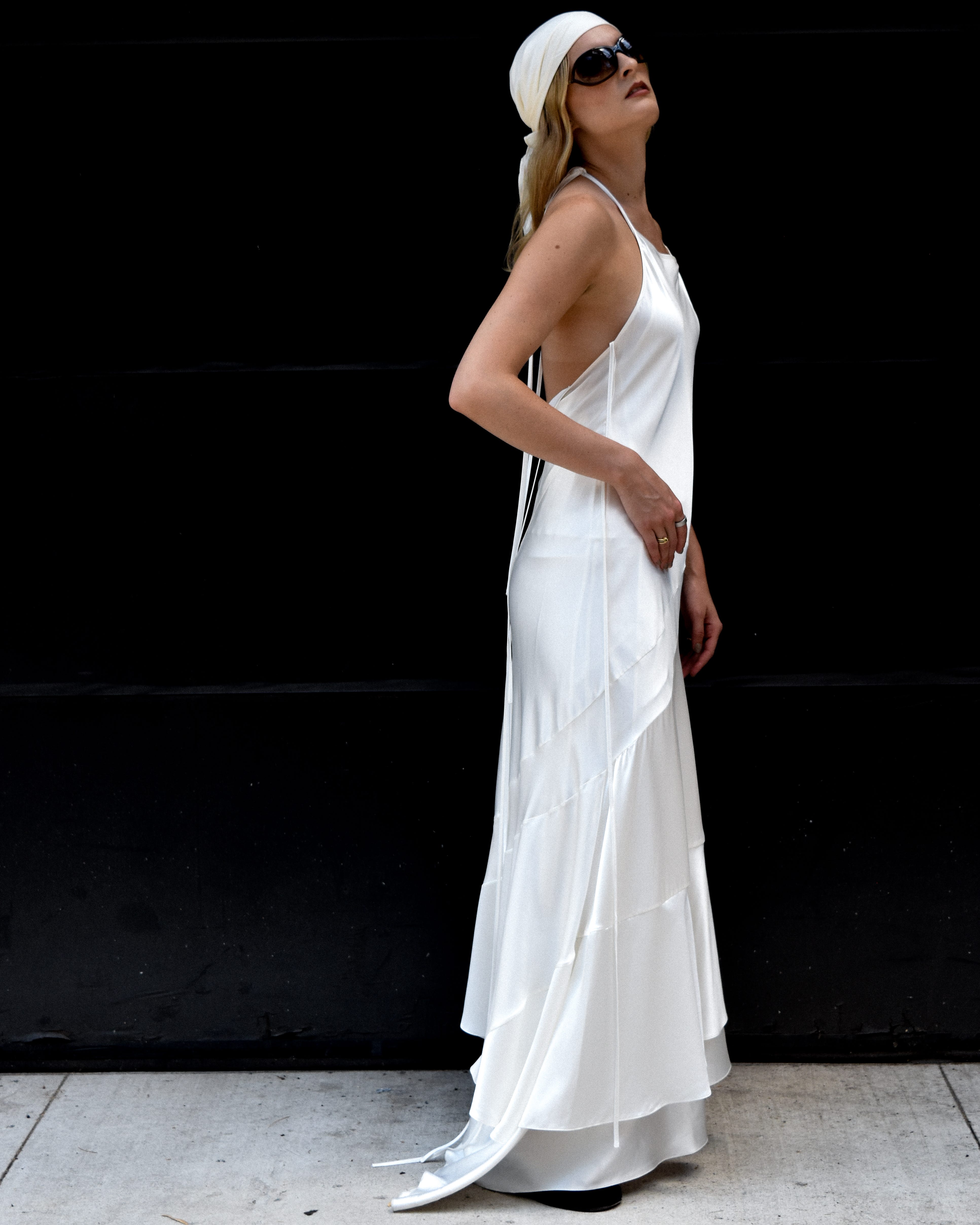 What strikes me most about his designs is their endless versatility. Take the silk charmeuse pieces, for instance — they can be layered in countless ways: a silk top over another, paired with a dress, finished with a skirt beneath. Yet each piece also holds its own beautifully, making just as much impact when worn alone. What I love is that investing in these pieces never results in a monotonous wardrobe. With their ties, cutouts, and fluid shapes, they invite endless experimentation and reinterpretation.